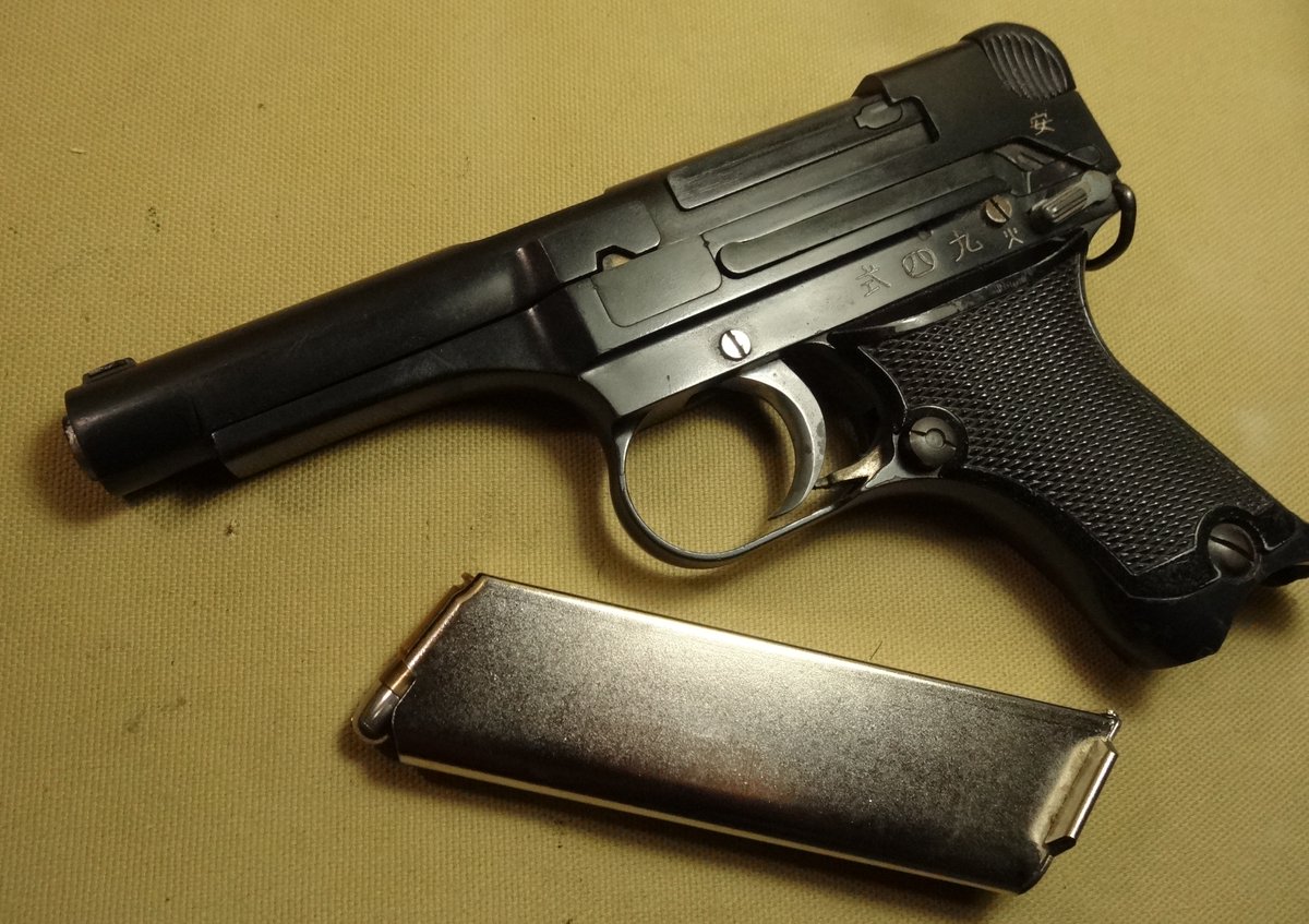 零五型 Pa Twitter 9 拳銃 当時の展示でもこれだけはチェーンで繋がれていた しかし当時のgun誌では分解 方法も掲載されていて マニアが勝手に分解結合する事も可能だったのだ